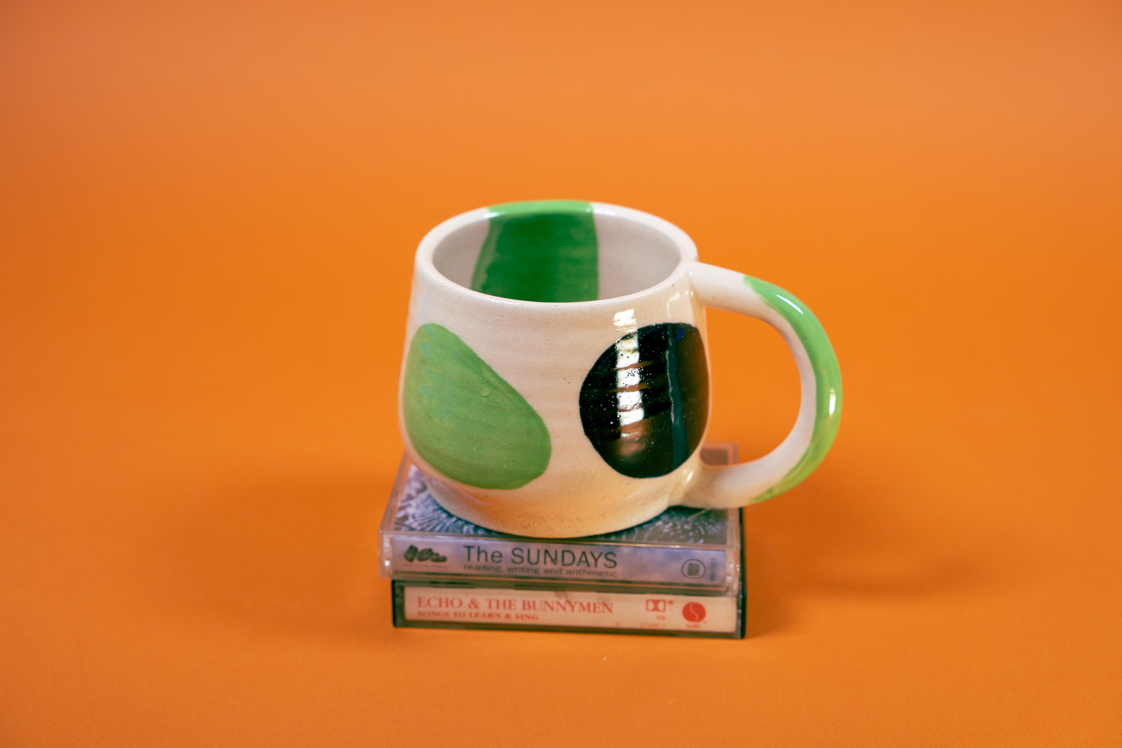mug // white clay body // clear gloss finish // cactus and black underglaze