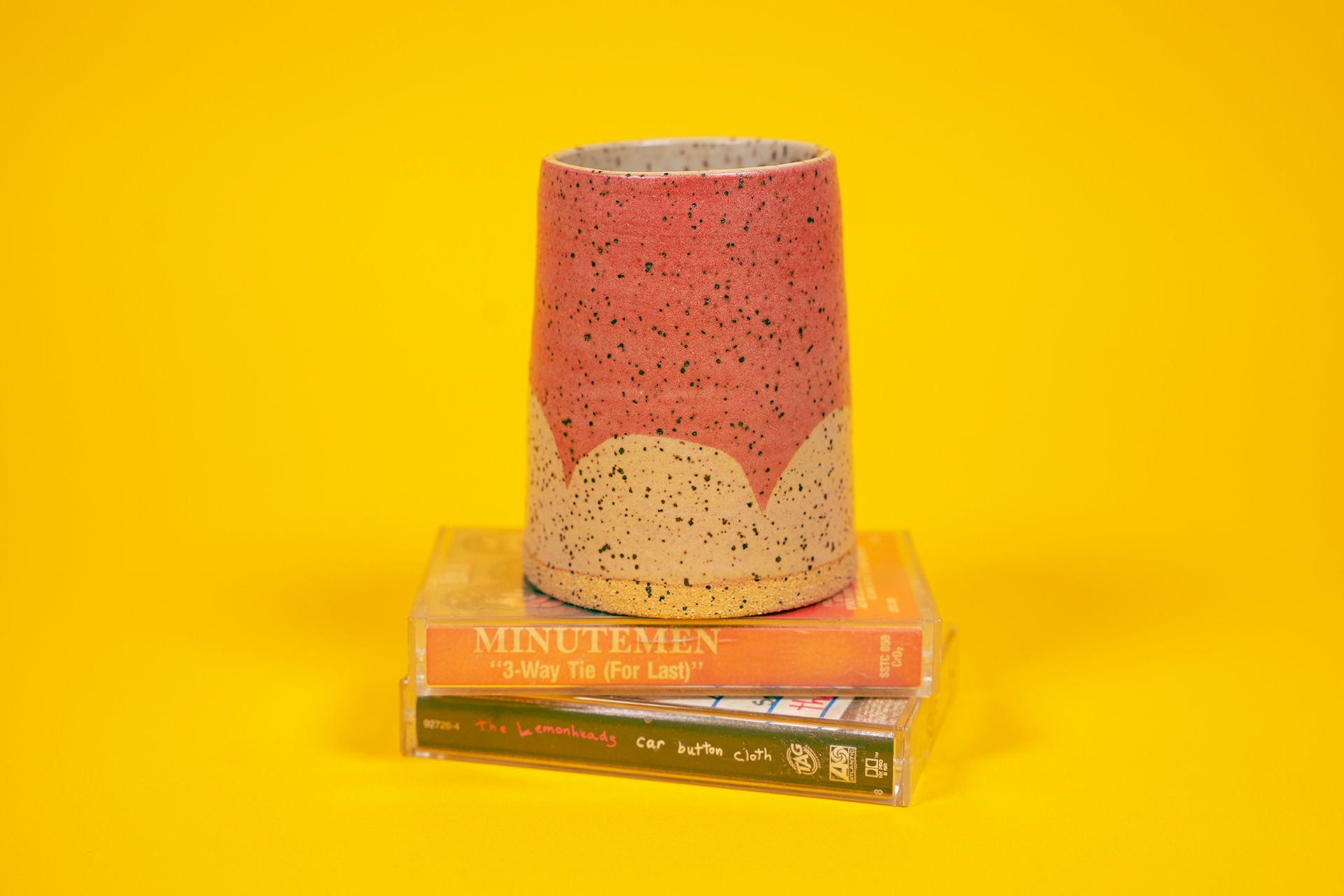 cup // speckled buff clay body // satin matte finish // red underglaze